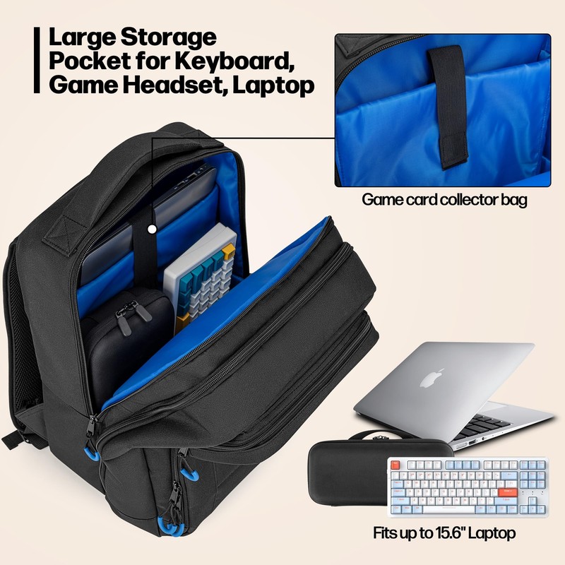 - LARGE CAPACITY: The third large compartment can hold 15.6’’ laptop, keyboard and game headset; Meet all your needs for travel