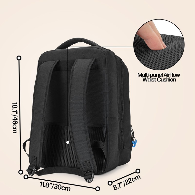 - CARRY IT COMFORTABLE: Our backpack is made of tough nylon for a long-term use; Also, the ergonomic shoulder straps and breathable waist cushion can relieve your pressure on the go