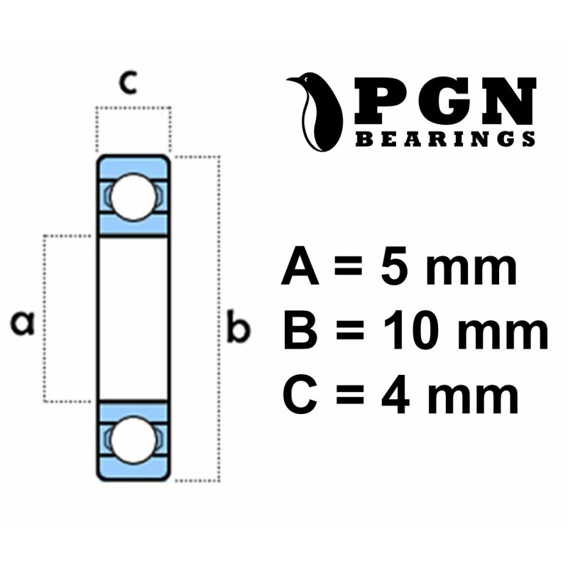 PGN Bearings (10) MR105-2RS Premium Rubber Sealed Ball Bearing, 5x10x4 mm, MR105rs