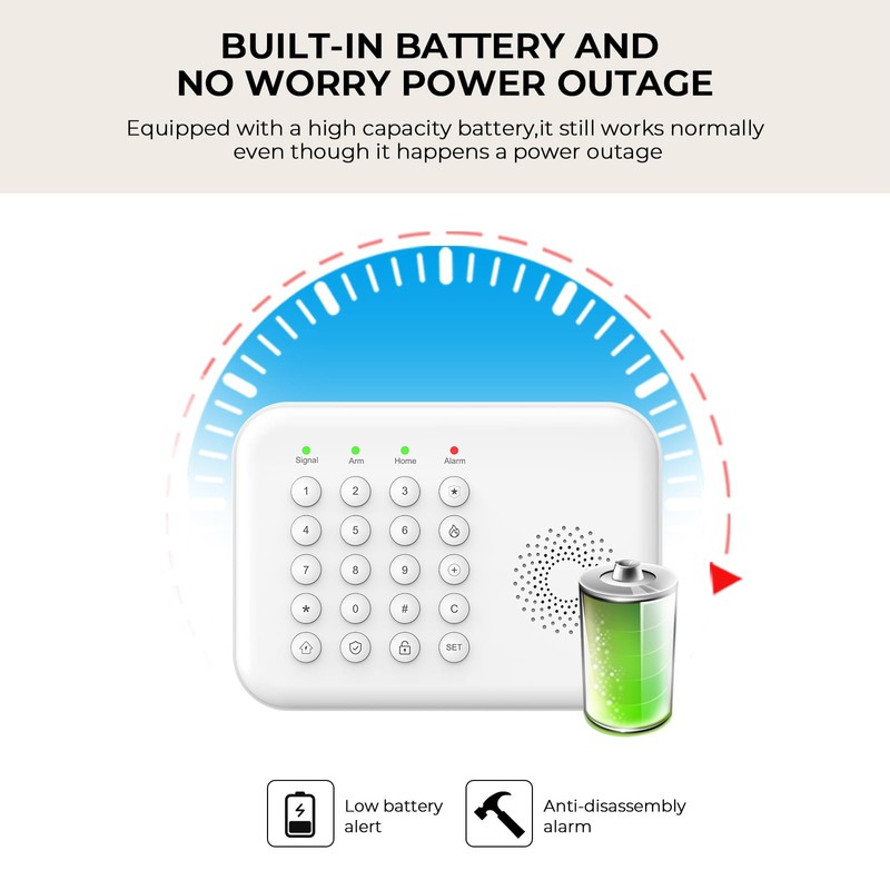 • 【REMOTE MONITORING AND CONTROL】By Mobile Apps Tuya or Smart Life,it is Enabling you to monitor and control your system from anywhere. You can arm or disarm the alarm,Check the Status of Sensors,and receive real-time alerts on your smartphone. Whether you're at work,on vacation,or simply out Shopping, you can keep an eye on your home's security,giving you peace of mind.
