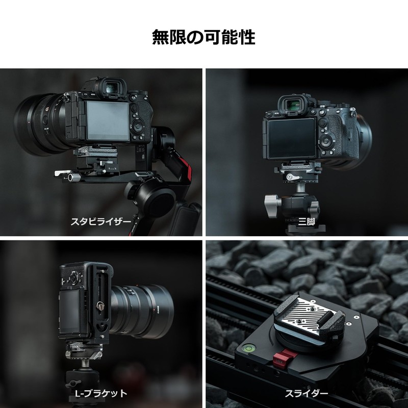 - Improved compatibility; Compatible with Arca-Swiss type plates, camera cages, and L-brackets 95% Arca Swiss type square and rectangular plates Compatible with L brackets Compatible with camera cages