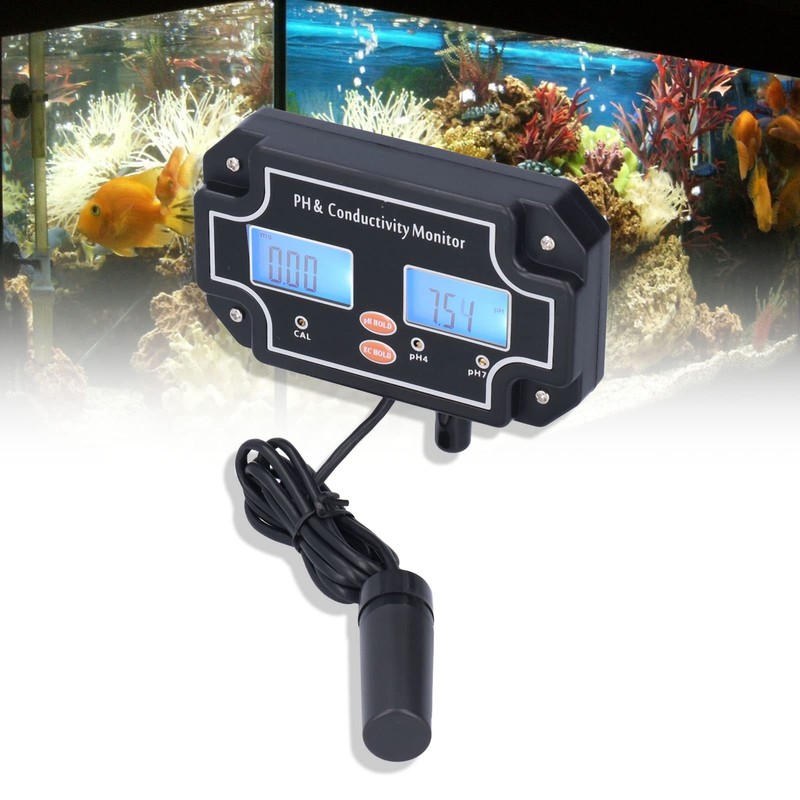 PH‑2681 PH/EC Water Quality Tester Conductivity Monitor ATC PH Meter DC6V Hydroponic Monitor for Fish Tank Aquarium (US)