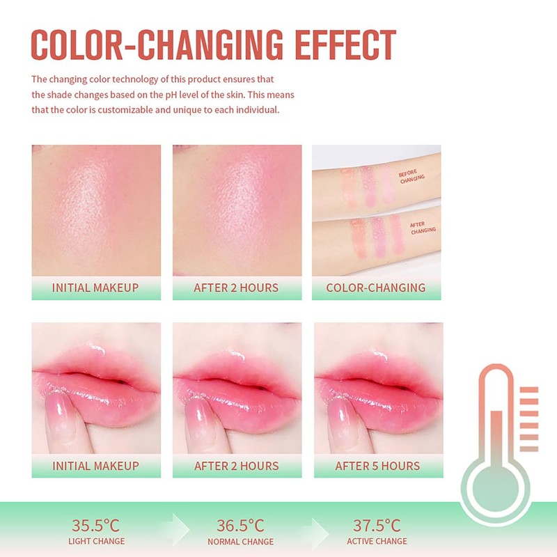 • Waterproof and Long-lasting: The color stick features a waterproof formula that stays put all day. The rich, creamy texture melts onto your skin with ease, providing seamless coverage and a long-lasting flush that won't fade or smudge.