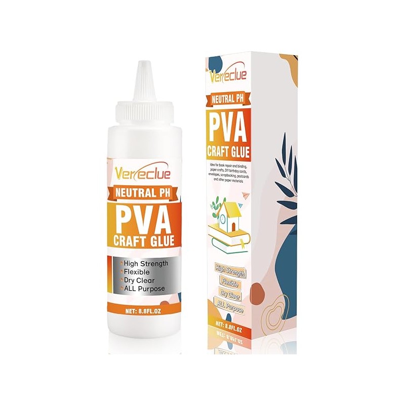 PH Neutral PVA Adhesive 8.8 Oz, Archival Quality Acid-Free Book Binding Glue, Dries Clear and Remains Flexible, Used for Framing, Collages, Paper Crafts