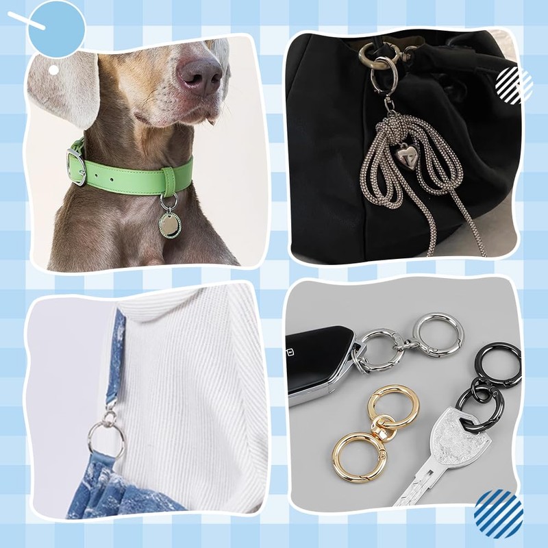 - Carabiner Matching: quickly attached and removed, spring o ring can be attached to most items, dog collar tags, cell phone chain buckles, bag wrist strap buckles, bag shoulder strap buckles, key rings, charm clips, carabiner key ring Ideal for keychains, wallet wrist strap clips, handbag extension rings or replacement rings for straps