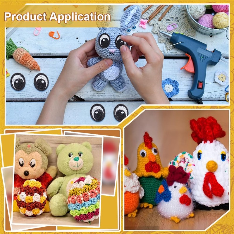 - Easy to use: can be attached by ironing on. On the back of the eyes there is hot melt adhesive, which can form a firm bond to the fabric after ironing at high temperatures. It can also be sewn by hand, so they are safer and never fall off.