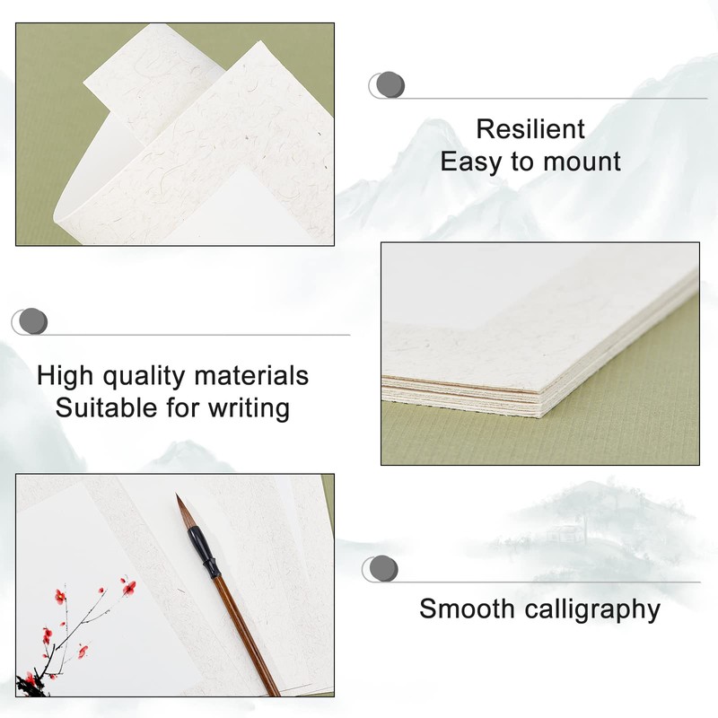 • Reliable Material: This paper is high quality and takes ink very well, excellent for calligraphy and painting subjects, thick enough to stand on its own an does not wrinkle at all, it is able to get nice dry-brush effects.