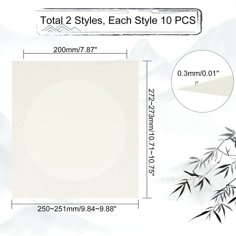 PH PandaHall 20 Sheets Pre-Mounted Soft Shikishi with Jingxian Raw Xuan Paper