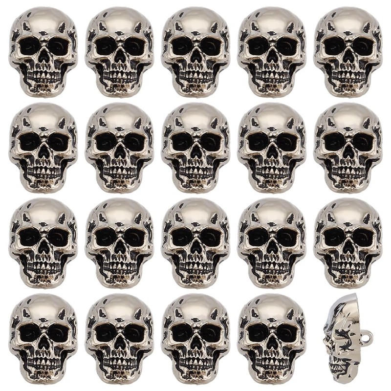 - Quantity and Size: You will receive 20pcs antique silver skull buttons, enough for your sewing needs and embellishing your DIY crafts. Size: about 18mm/ 0.7 inch wide, 25mm/ 1 inch long, 14mm/ 0.5 inch thick, hole: 2mm. The right size fits for most clothes