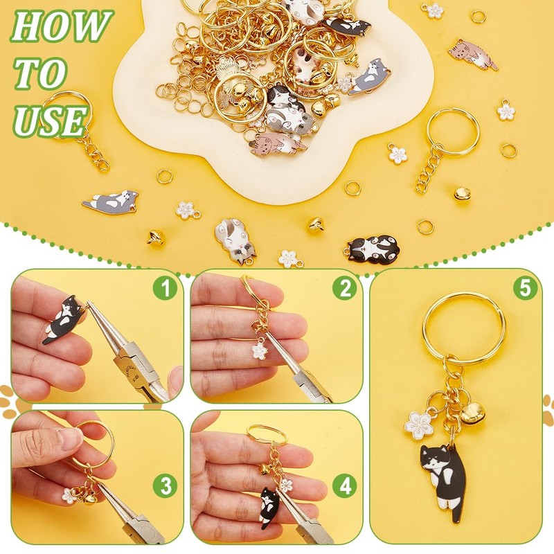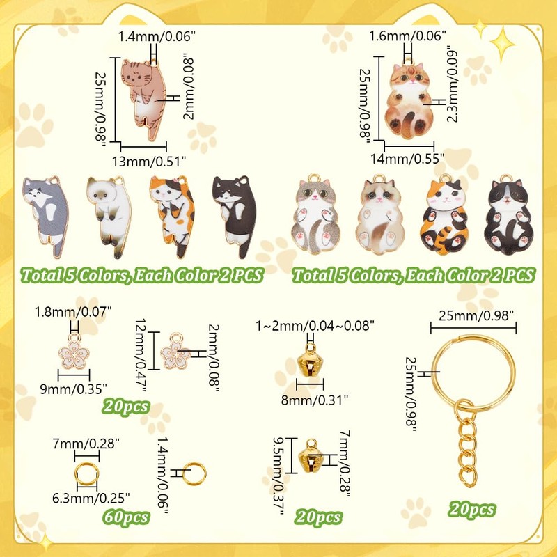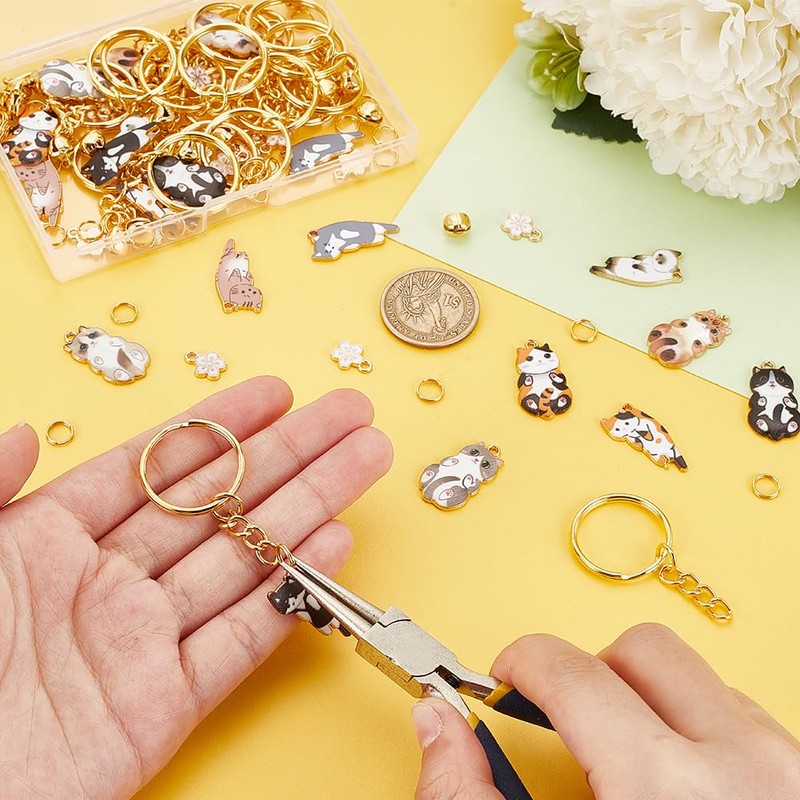 - Package Include: 20pcs flower charms, 20pcs cat charms in 10 styles, 2pcs each style, 20pcs split key rings and 60pcs split rings, it contains a variety of materials and tools, rich styles, easy to operate, can find the right material in this set, can meet the needs of hand-made.