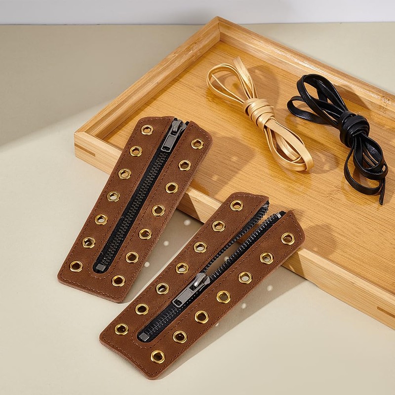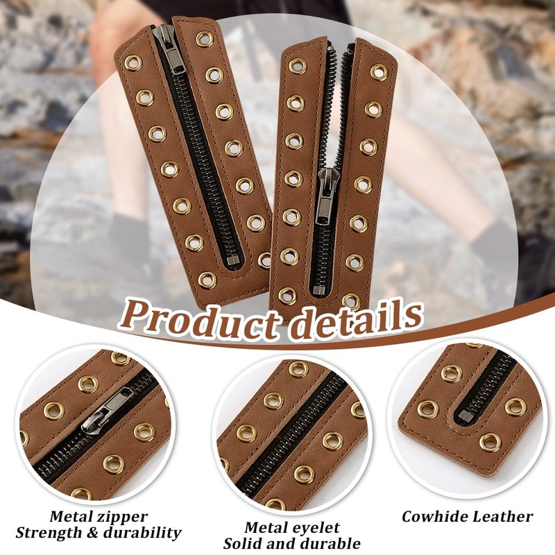 - Size and Quantity: Pakage comes with 1 pair(2pcs) of leather lace-in boot zipper inserts measuring about 6.3x2.3 Inch/16x6cm, 0.2 inch/5mm thick, hole: 0.2 inch/5mm, 7 eyelets, the distance between the eyelets is 0.59 inch/15mm, please measure the eyelets' distance of your shoes to match the zipper.