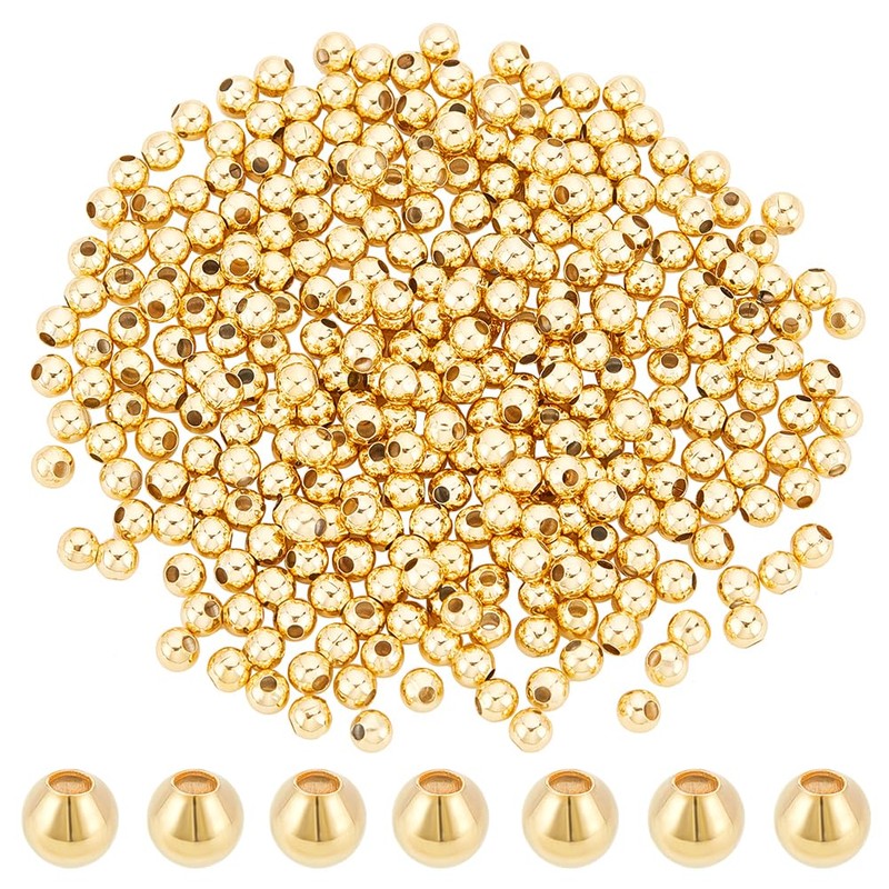 PH PandaHall 300pcs 18K Gold Spacer Beads 4mm Seamless Smooth Beads Waist Beads Long-Lasting Beads Metal Brass Beads for Bikini Belly Chain Layered Bracelet Satellite Jewelry Making