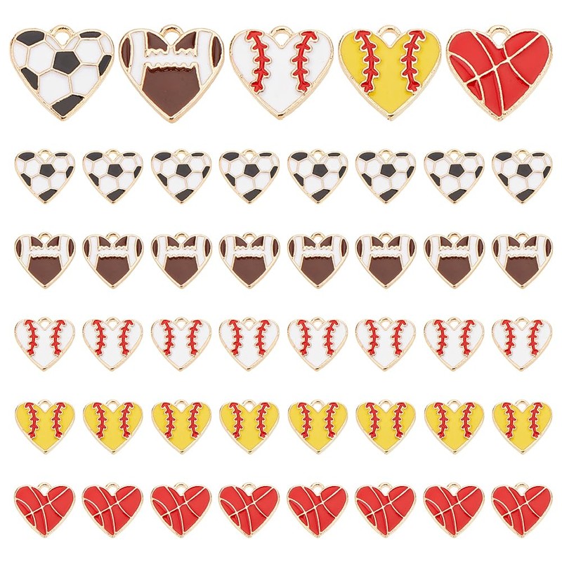 - Sports Charms: Do you love ball games, now you have cute sports ball charms to spice up your attire. The heart-shaped enamel charms are designed with unique sports motifs, including baseball, football, softball, basketball and soccer charms for your different crafting needs.