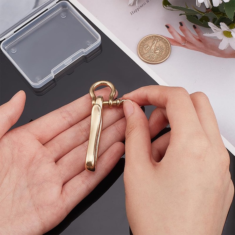 PH PandaHall Fish Hook Keychain, Brass Key Ring Golden Solid U Shape Key Hook Belt Keyring Pocket Clip with Key Shackle Heavy Duty Car keychain for Men Women Wallet Chain Purse Accessory