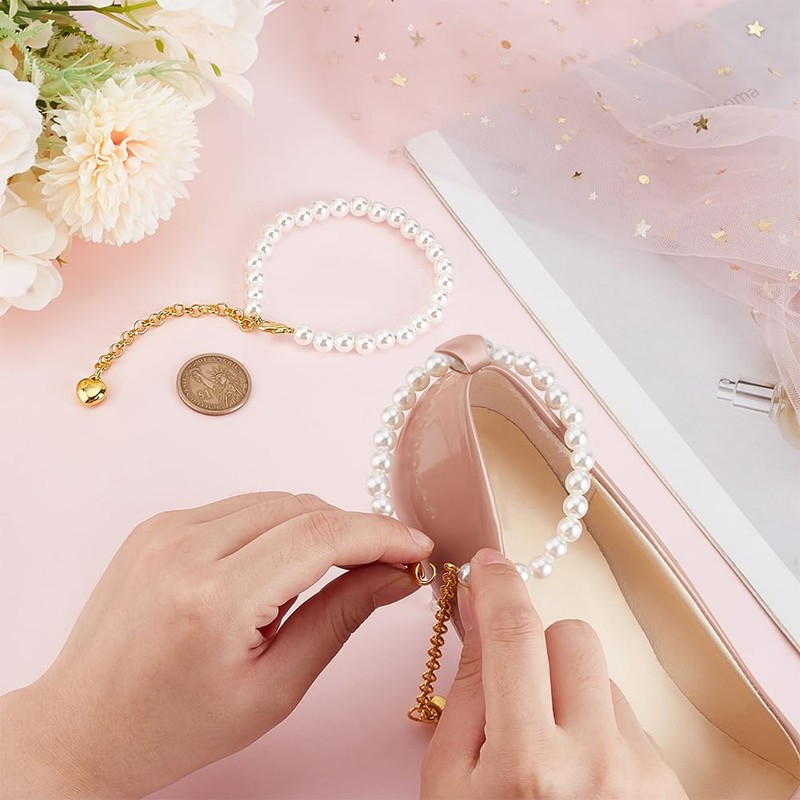 PH PandaHall High Heel Shoe Strap Laces with Beads to Hold Wide Shoes with High Heels, Removable Laces and Ankle Accessories, Anti-Locking., gold-coloured