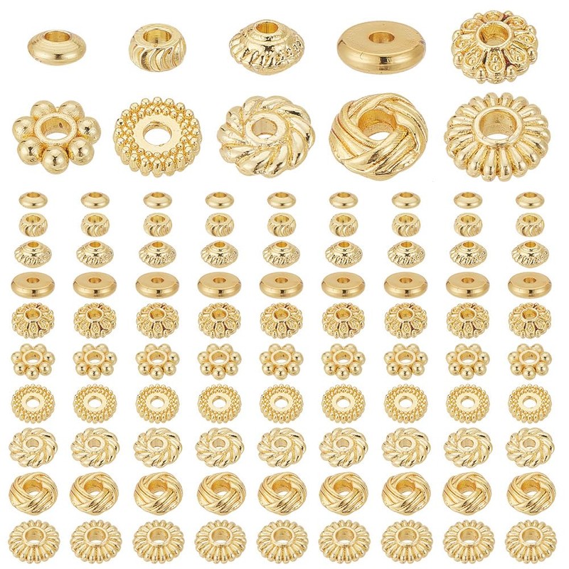 - 10 styles: flower, roundel, flat round and other styles, 10 pieces per style, total 100 pieces gold beads, enough quantity to meet your needs in daily life, and suitable size to match beads in different styles.