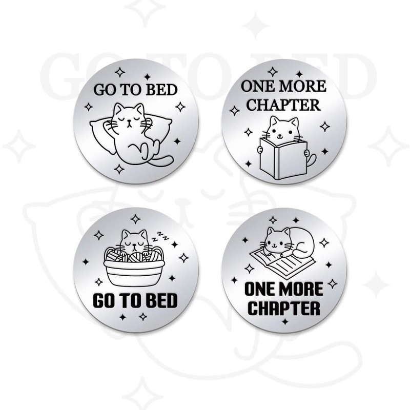 - Double sided design: the cute pet coin with the double-sided engraving "Another chapter" and "Go to bed" is so cute, use this decision toss coin to help your friends or friend to properly arrange sleep and reading time