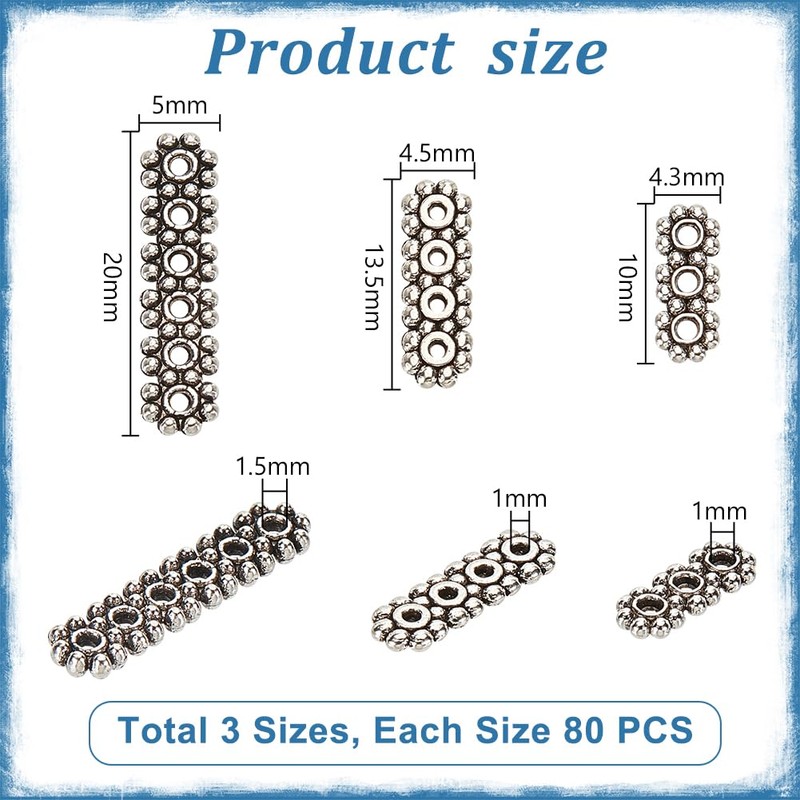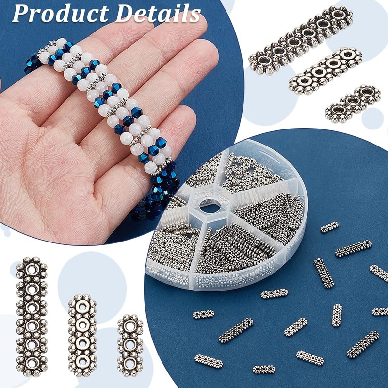 PH PandaHall Pack of 240 Spacers Antique Tibetan Strand Separator 3/4/6 Hole Spacer Multi Beach Link End Bar Find Necklace Connector for Layer Jewellery Hole 1-1.5 mm