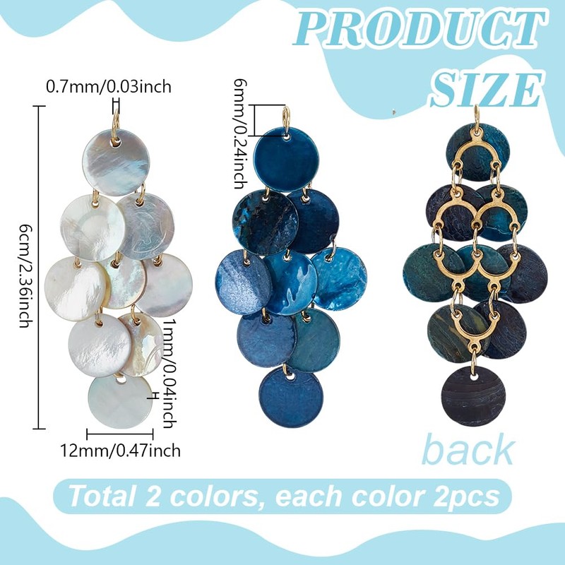 - Size: the package includes 4 pieces natural akoya shell pendants in 2 colours, 2 pieces for each colour. The finished shell pendants are approx. 60 mm long, 304 stainless steel component links 8.5 x 9.5 mm, 6 mm jump rings, flat round bowl 12 ~ 13 mm, perfect for DIY jewellery and crafts
