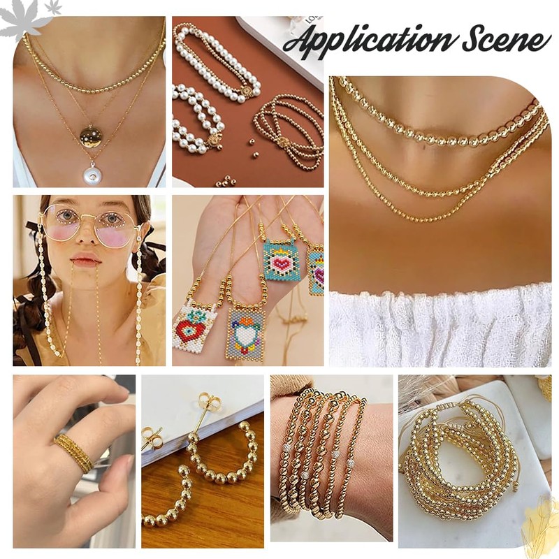 - Stackable jewellery making: simply stack a gold bead bracelet in the mix, ideal for overlaying with other elements to achieve an overlay effect. Easy to combine with clay beads, rhinestones, gemstone beads, acrylic letter beads and others, good for DIY handmade projects.