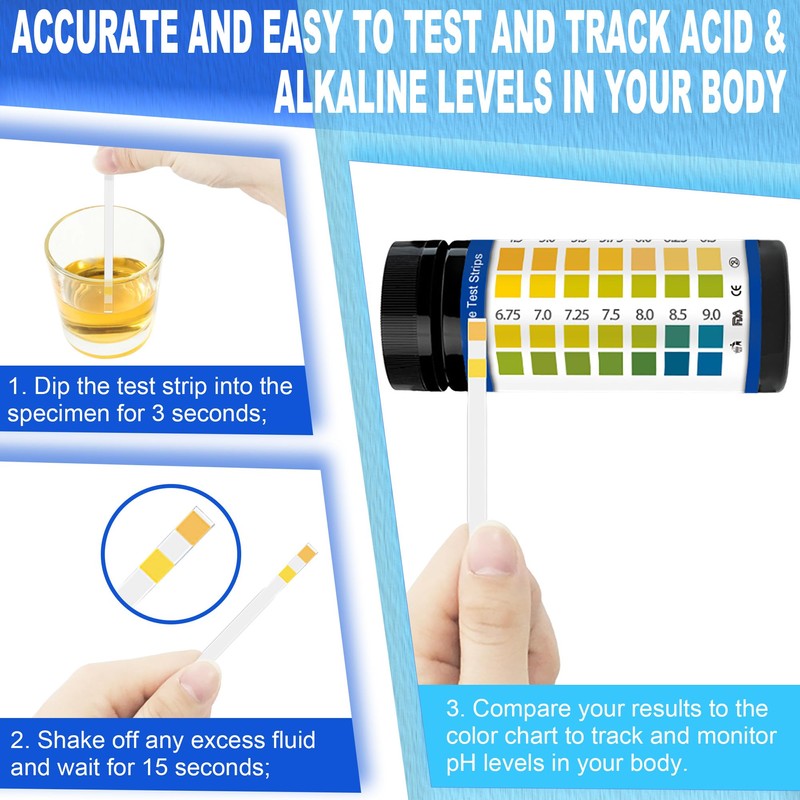 - QUICK & EASY FOR ACCURATE TEST RESULTS - Our pH testing strips can resolve your doubt of your body pH level to stay on healthy diet. Simply dip the pH testing strips into test specimen and have accurate results in 15 seconds. One small step for daily testing, one big step for monitoring healthy lifestyle.