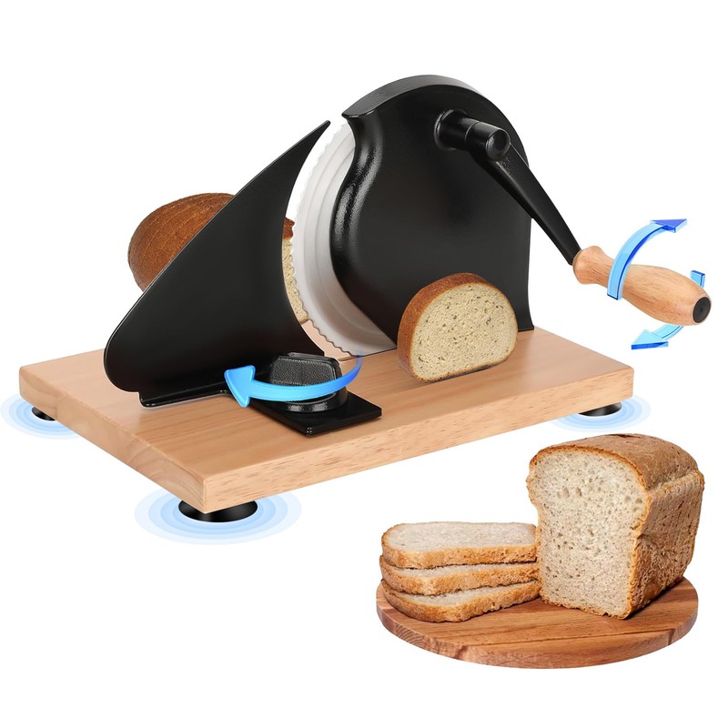 - Classic: Manual Rotary Bread Slicer is a combination of classic nostalgia and modern technology, is the perfect embodiment of German exquisite craftsmanship, is the product of historical precipitation, in the kitchen it is bread busters, placed on the booth,It won't lose to any antiques, is absolutely your choice to enjoy life and watch history