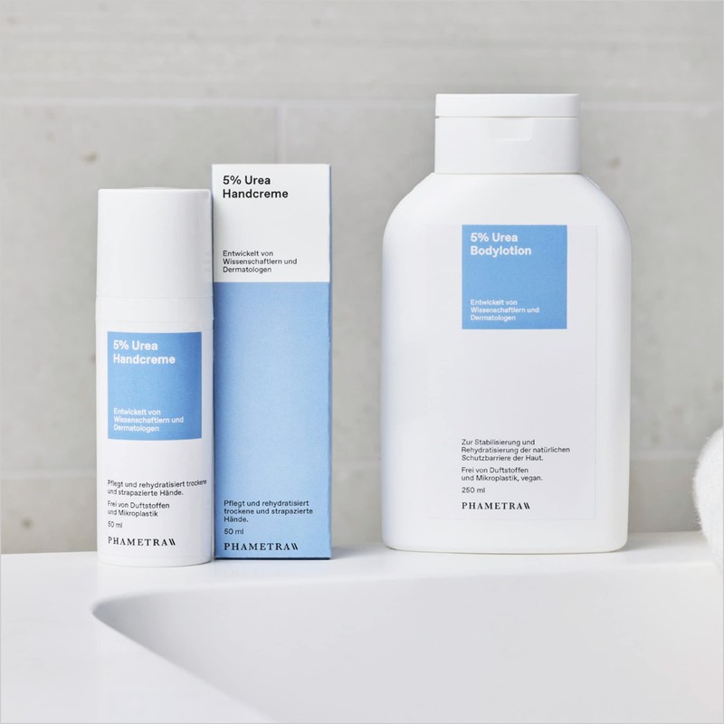 - The fast-absorbing 5% Urea Phametra body lotion nourishes and regenerates stressed skin throughout the body. It reduces tension, binds moisture and increases skin elasticity.