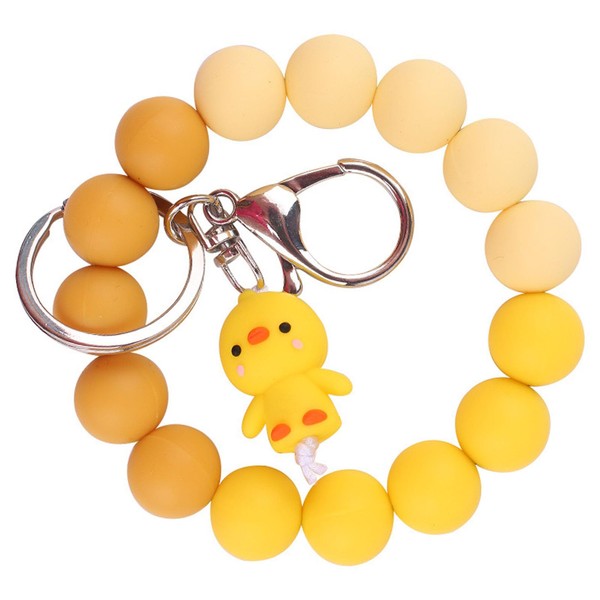 Phamines Silicone Beaded Wristlet Keychains with Charms, Rabbit Duck Dinosaur Cactus Bear Beads Key Ring Bracelet for Women (Yellow Duck)