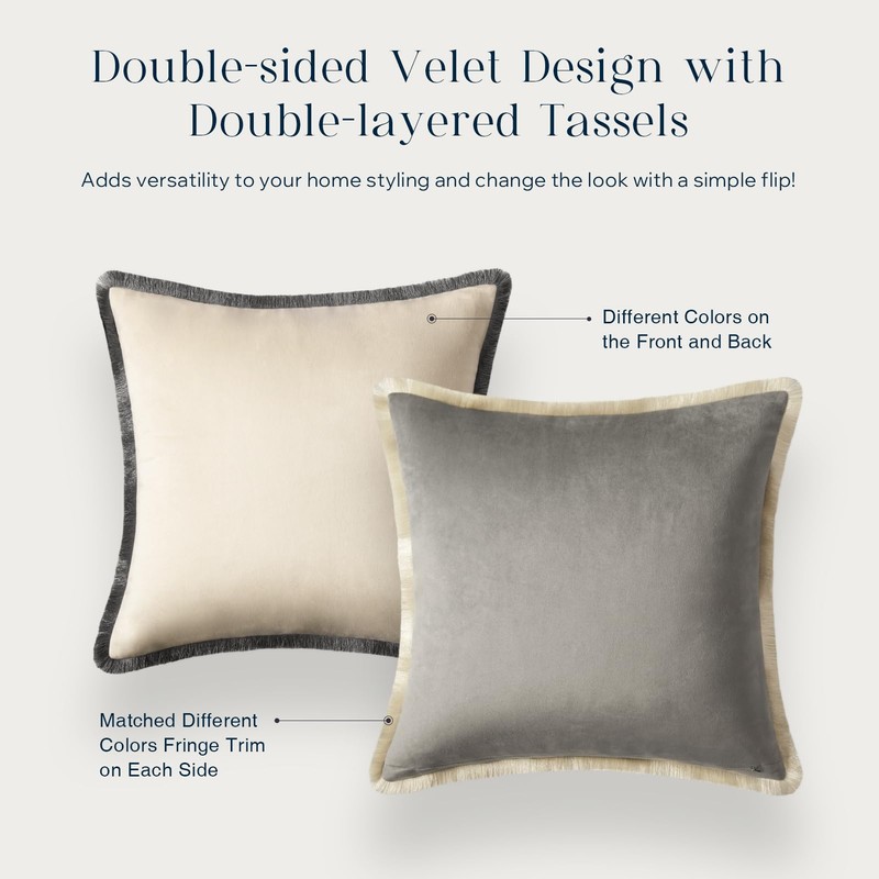 • 【Exquisite Fringe】- These elegant pillow covers craft color-contrasting velvet and double-sided design with tassels in contrasting colors as well, stylish and exquisite, adding a touch of spring vigor to your room decor. Crafted with top-graded fringe, these velvet pillows show your high level of taste. The reinforced sewing offers less shedding.