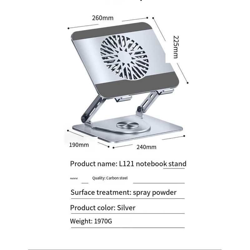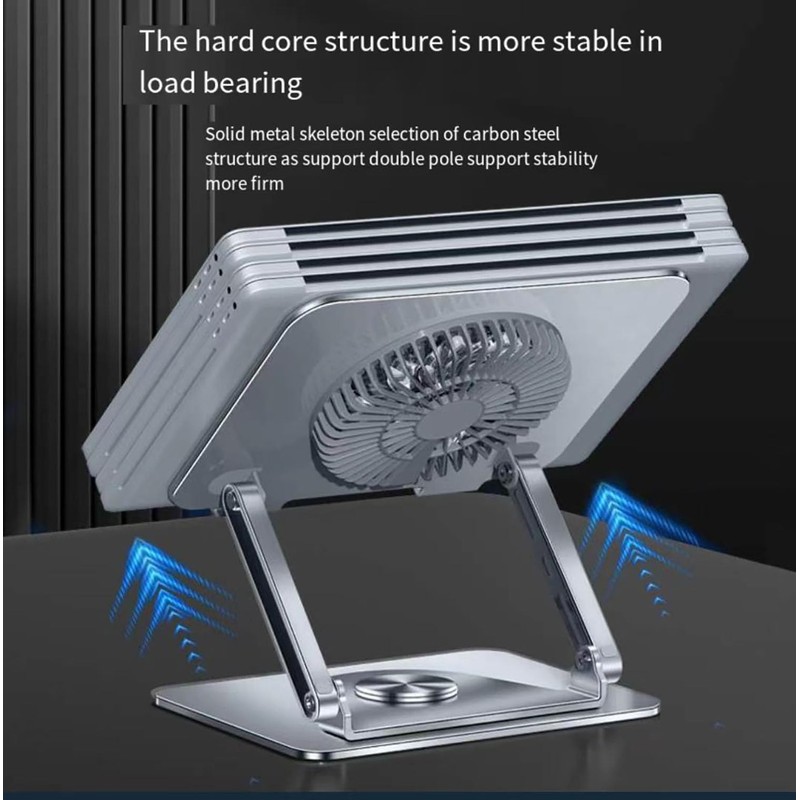 Adjustable Laptop stand with 360°rotating base with Magnetic detachable fan