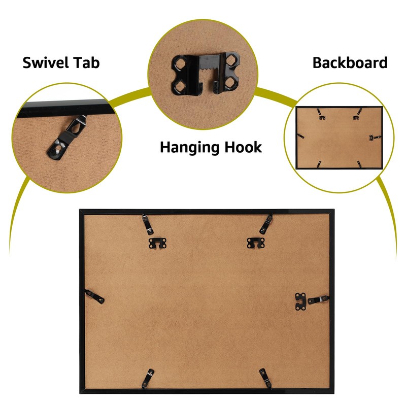 - Two Orientation: The frame backboard made of MDF, and the photo frame has 3 hooks, so it is ok to mount horizontally or vertically on the wall