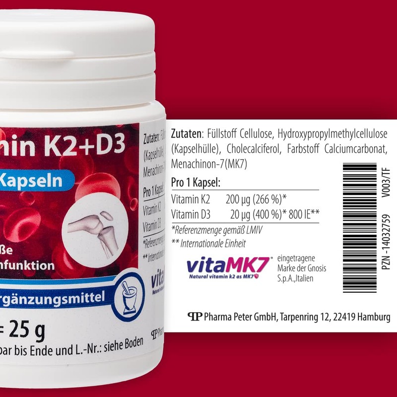 Pharma-Peter Vitamin K2 MK7 200 mg + D3 Capsules, 60 Capsules