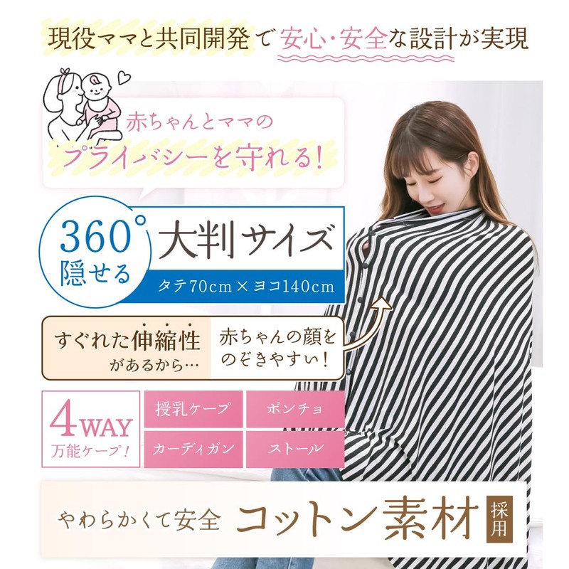 - Large yet compact storage: The large size of 27.6 x 55.1 inches (70 x 140 cm) covers your mom and baby. You can feel comfortable while you are on the go while providing privacy for breastfeeding. In addition, it is large and can be folded or rolled up to make it compact and can be stored in a full bag, so even moms with a lot of luggage