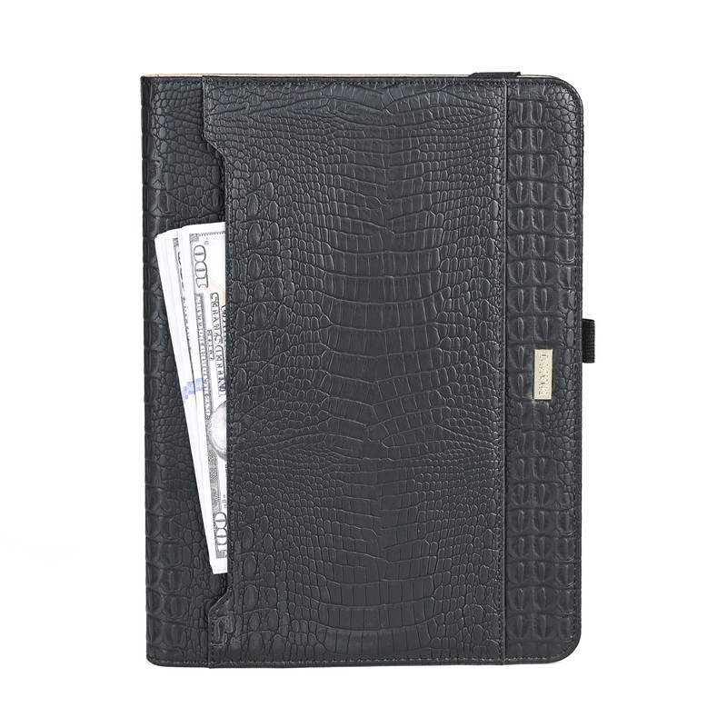- Case can switch to a horizontal position and vertical viewing and act as a firm stand. Kickstand design is for convenient free-hands use when watching movies or reading.Three leather rails to set up sturdily multiple horizontal stand angles for good typing and watching, A Front Document pocket to let your life more easy.