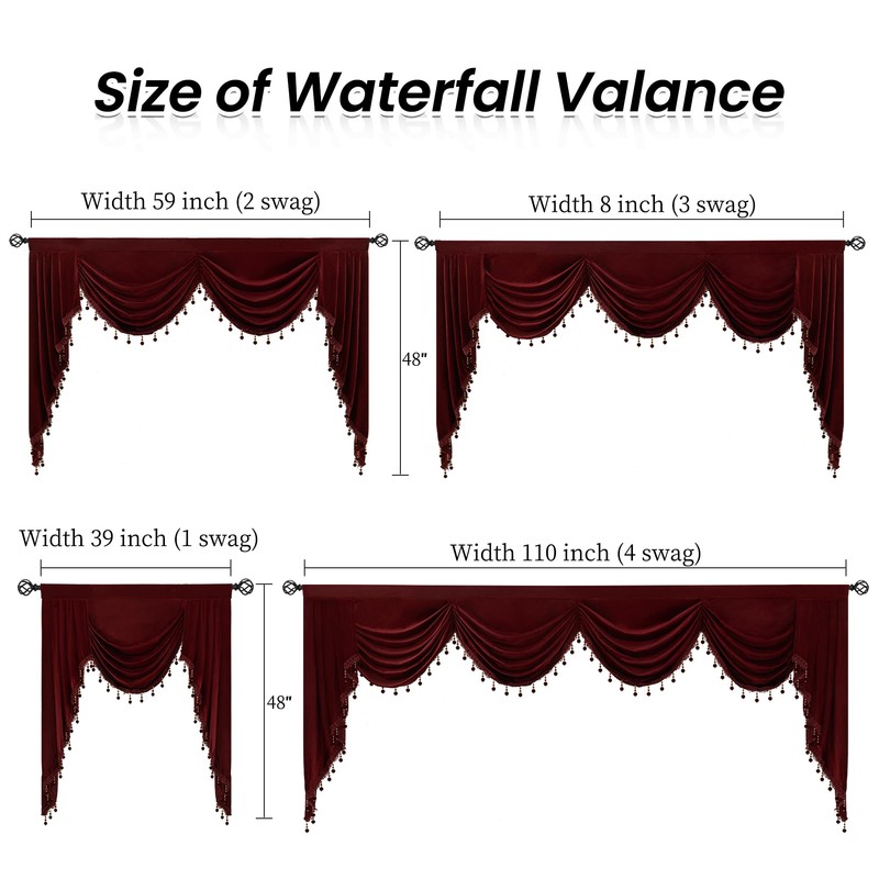 - Velvet Material: Waterfall Window Valance uses soft and breathable velvet fabrics, which is comfortable to touch and suitable for home decoration.