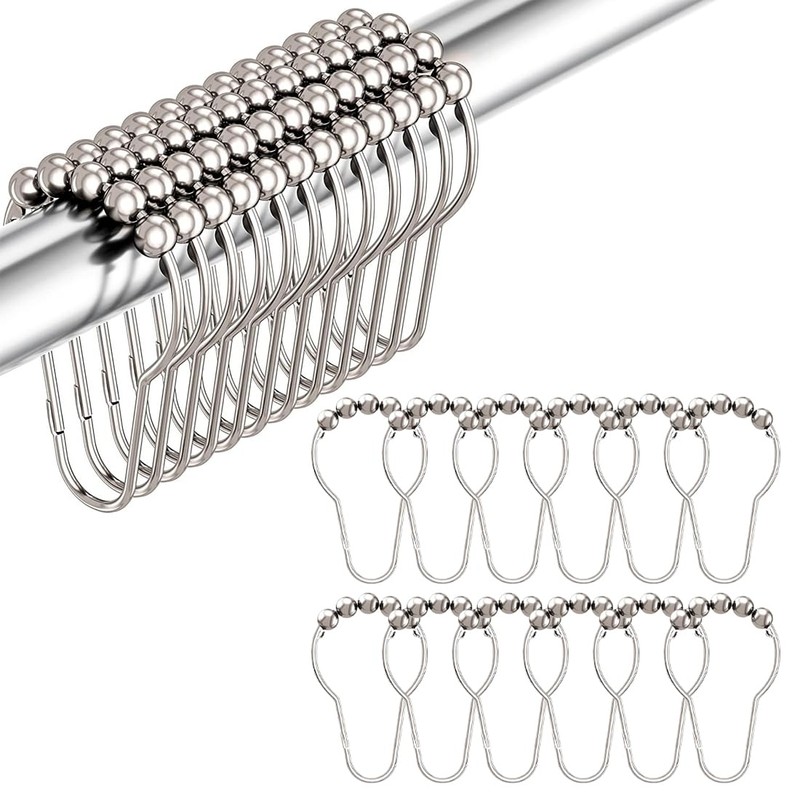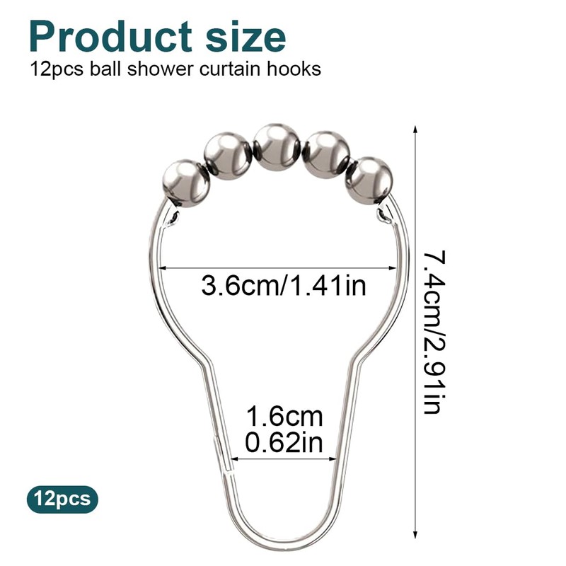 - Sliding ball system: Shower Curtain Hooks: The shower curtain hook has a smooth ball design to reduce friction with the lever, is easy to pull, clamp-free and smooth and easy to slide.