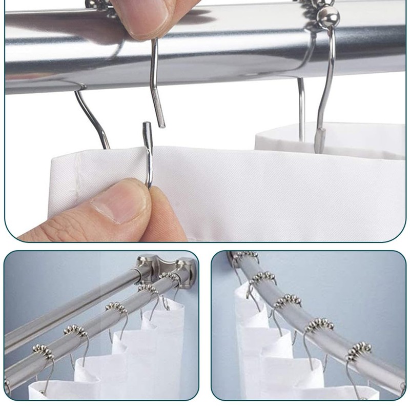 Sliding ball system: Shower Curtain Hooks: The shower curtain hook has a smooth ball design to reduce friction with the lever, is easy to pull, clamp-free and smooth and easy to slide.