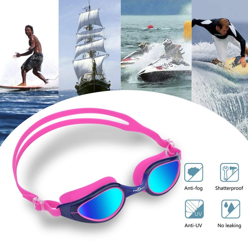 - √100% UV400 PROTECTION & SHATTER-RESISTANCE FRAME: 100% UV400 PROTECTION and Shatter-resistance frame: The high-tech lenses of this swimming glasses can be divided into three layers: anti-UV layer, hydrophilic layer and anti-fog layer. The outer surfaces mirrored coating lenses with UVA/UVB protection which can help protect your eyes from being hurt by UV and bright lights. The specially manufactured Premium PC material of frame anti-fragmentation performance is good.