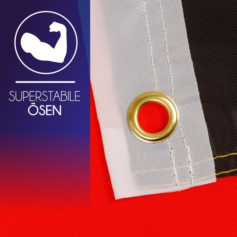 - Weather-resistant – particularly resistant material and a special sealing technology ensure exceptional durability of the German flag – holds and holds and holds easily