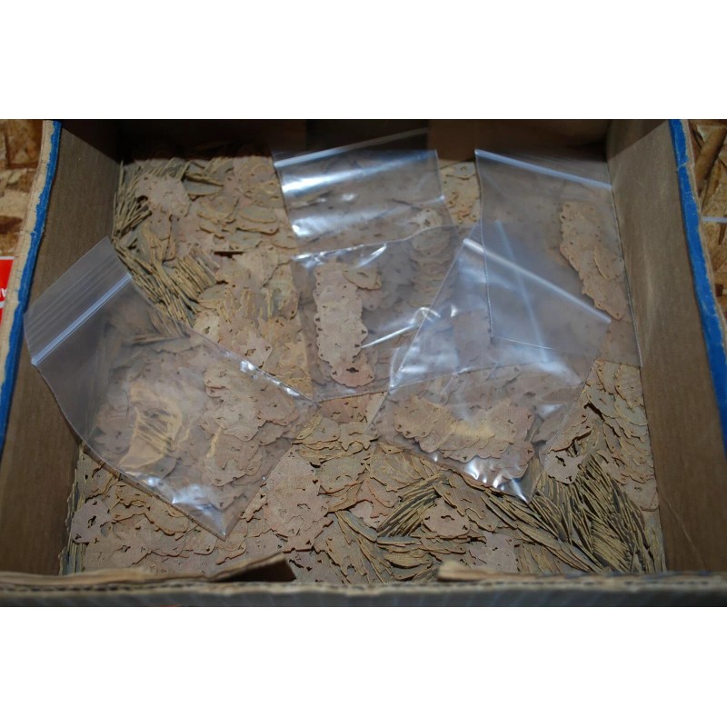 See pics for dimensions. Good for miniature crafts, jewelry making, resistor / electronic component art etc. Some look like little insect or animal heads others like crop circles or solar systems... Unique parts originally used in manufacturing electronic component. These are perfectly shaped, drilled as you see them etc. The phenolic laminate material is a unique quality in that it is very rigid, it is grindable / shapable / drillable with tools like a dremel etc. its’s light weight and not water absorbent and quite resistant to heat. What will you create with these? I have many styles available and MANY pieces of each. Selling in portion pack qty stated in title – shipping included. If you need a custom deal – let me know and I’ll make one for you.