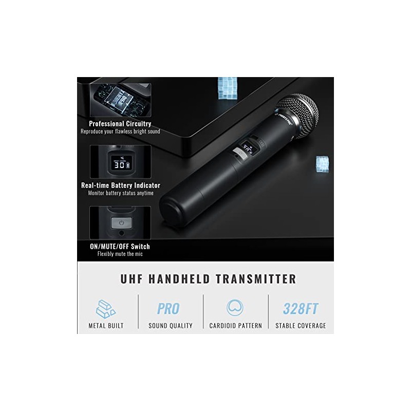 - DURABILITY: The microphone wireless has sturdy metal construction for heavy use, comfortable to use during performance.