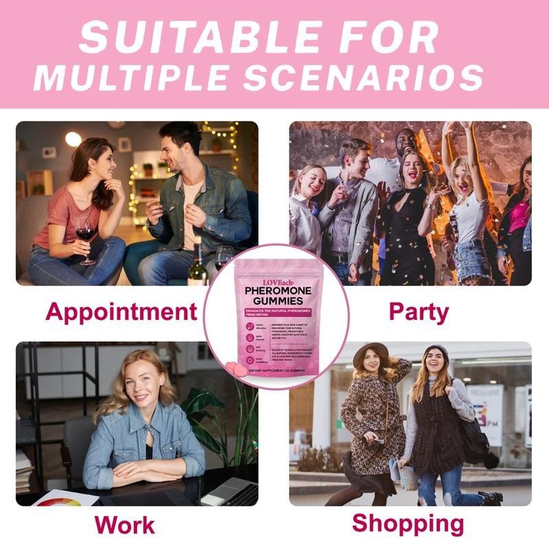 Pheromone Gummies - Empower your body and mind by enhancing your natural Pheromone and improving your chemical reactions with those around you. With all natural ingredients to bring attraction and confidence, Supported by science and carefully crafted with all natural ingredients to bring attraction and confidence.