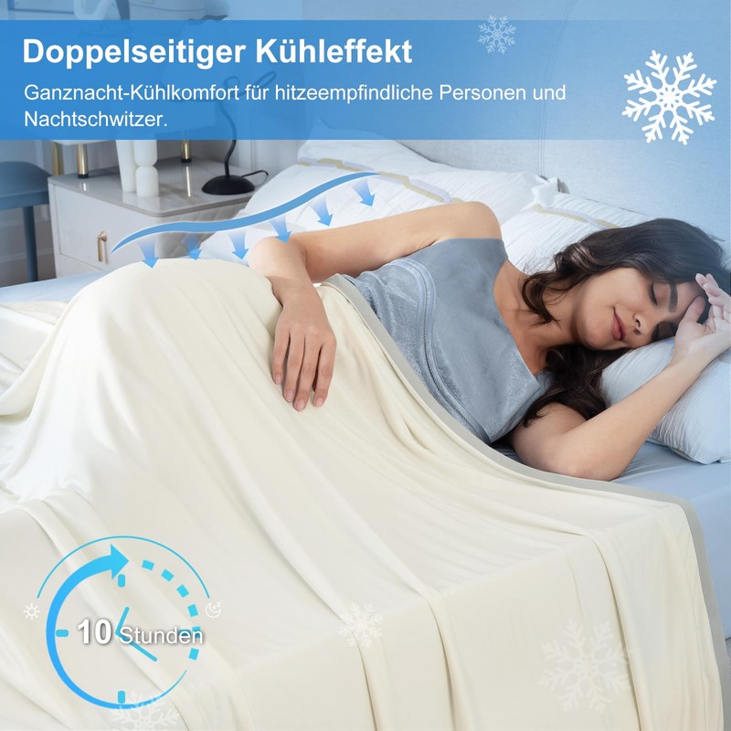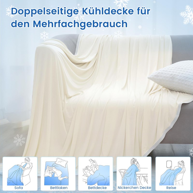 - BREATHABLE AND SKIN FRIENDLY: This cool blanket is ideal for summer! High-quality cooling fibres are three times more breathable than cotton and absorb heat and sweat quickly. The innovative Arc-Chill material ensures effective cooling without being wet or clammy. Both layers are quite smooth and cool to the touch. The cooling blanket is very soft and light and comfortable on the skin, making it perfect for a cosy evening.