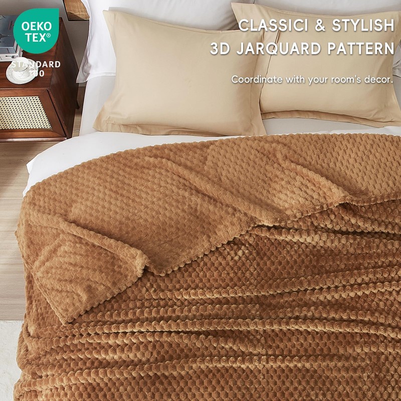 - 3D Jacquard Pattern: The luxury 3D imitation turtle shell jacquard pattern offers this fleece blanket a unique silhouette and modern look. It will make this fuzzy blanket an excellent decorative element in any home, and easily enhances and coordinates your living room décor.