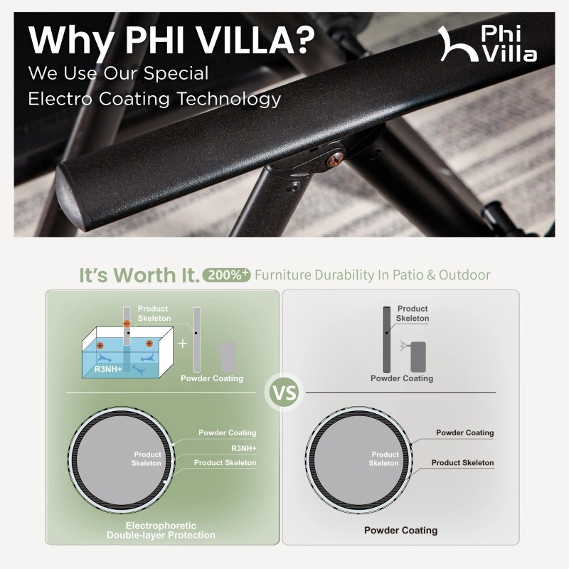 PHI VILLA Outdoor Dining Chairs Set of 2 Patio Folding Chair Adjustable Portable Armchair