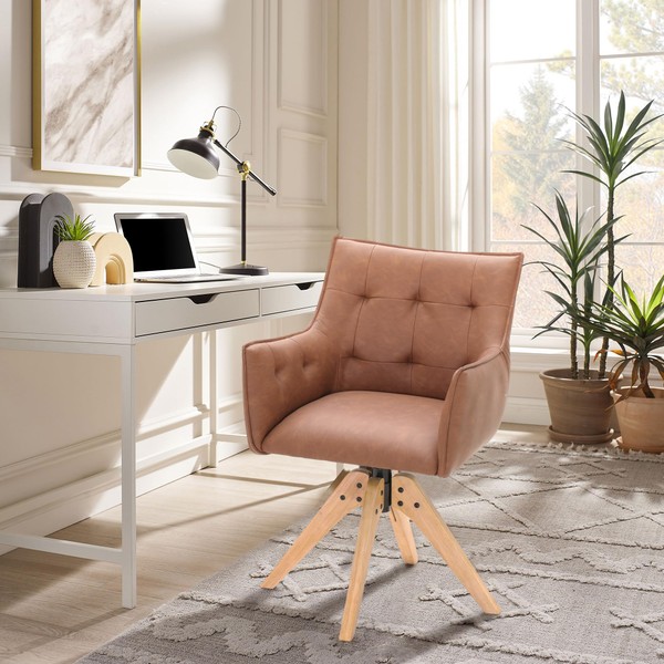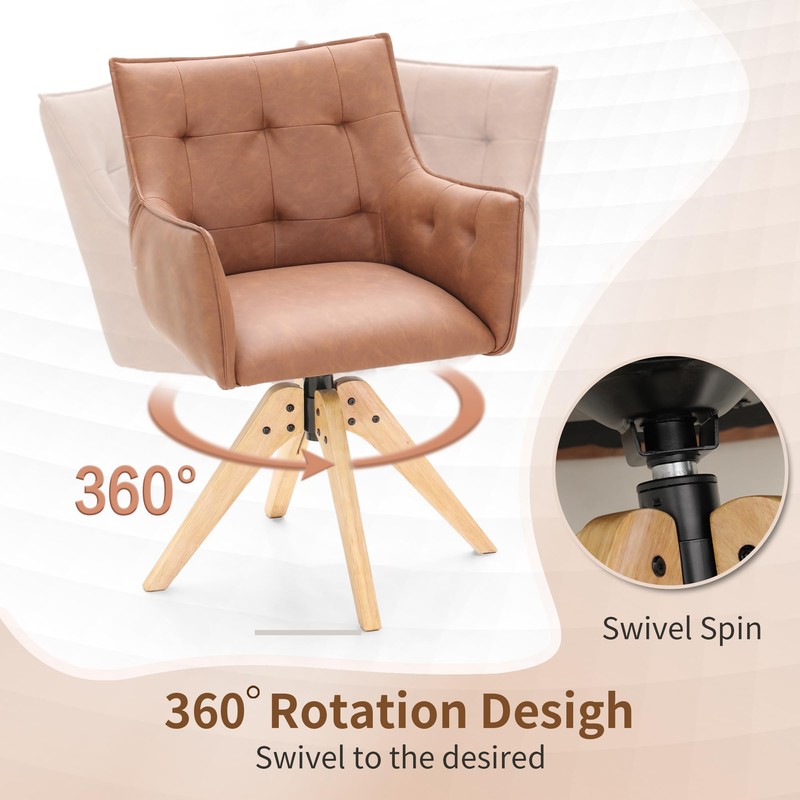 PHI VILLA Swivel Accent Chair Set of 2 - Mid Century Modern Desk Chair with Wood Legs for Small Space Dining Room Chair, Home Office Chair