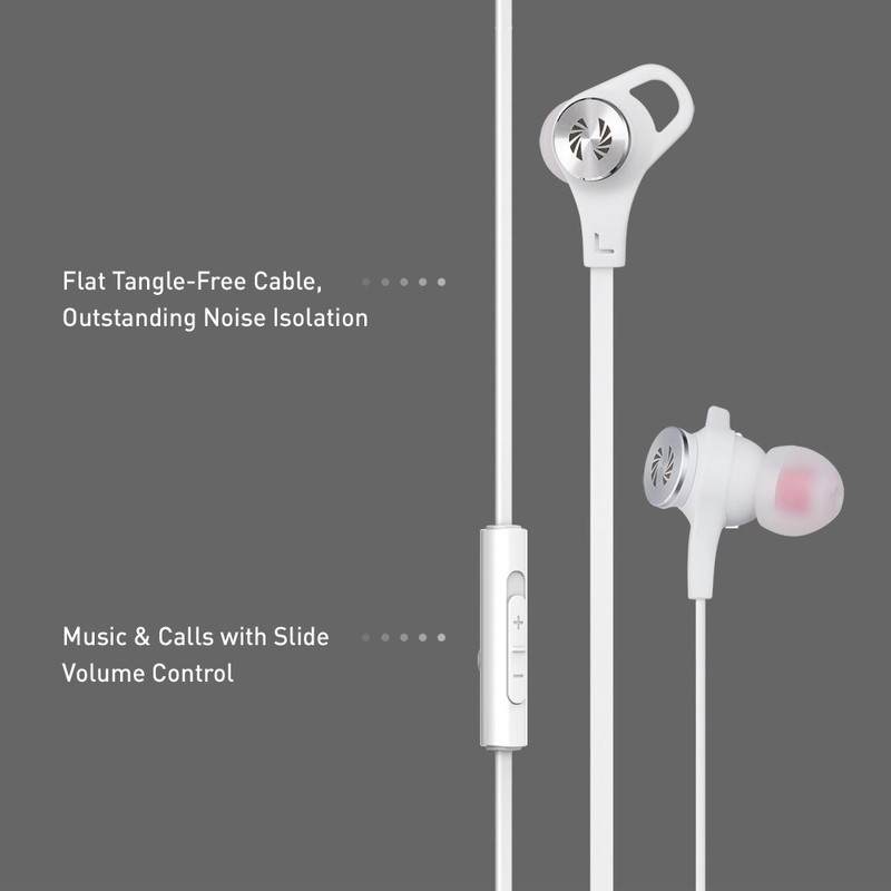 Phiaton C530S In Ear Stereo Earbuds Headphones Wired Earphones with Microphone and Controller, Extra Bass, White