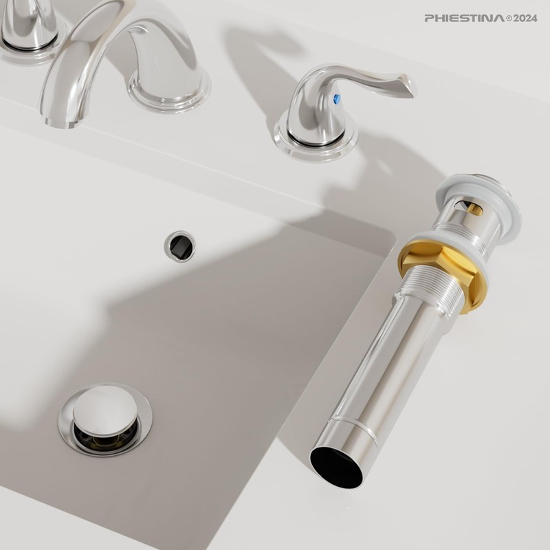 Phiestina Pop Up Drain for Bathroom Sink with Overflow, Stainless Steel Sink ...