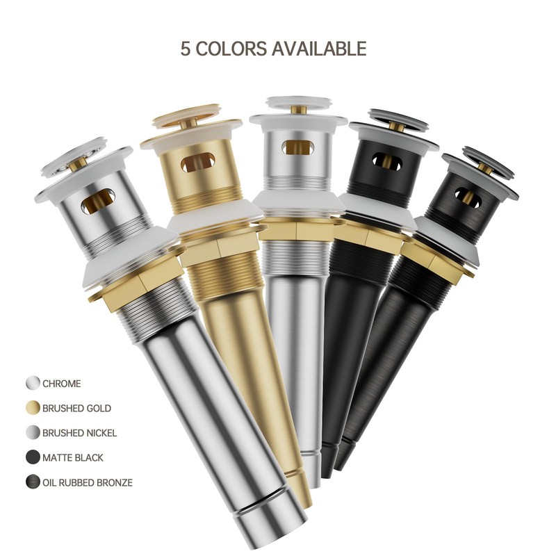 Product Name: bathroom sink pop up drainProduct information:1.Material: Solid Brass 2.Overflow: Yes3.Build-in Strainer: YES4.Finish: ChromeFits sinks with 1 .5"/38mm drain holes.From the manufacturer-Phiestina drainer is designed for durability. Pop-up stopper is made of brass and tailpiece is of stainless steel. No platic parts. Industry-leading finish ensures our drainer can resist daily scratches, corrosions and tarnishing. -Easy to use:Push down to seal and push again to open-Easy to install:No tools required