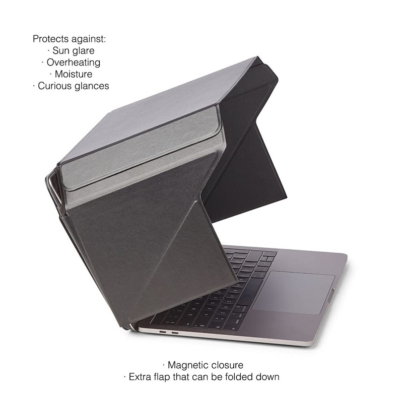 - EASY TO USE AND STORE: This foldable self-standing laptop shade, can also screen iPads/tablets and books, plus it has additional compartments for phones, power banks, credit cards, cash and papers